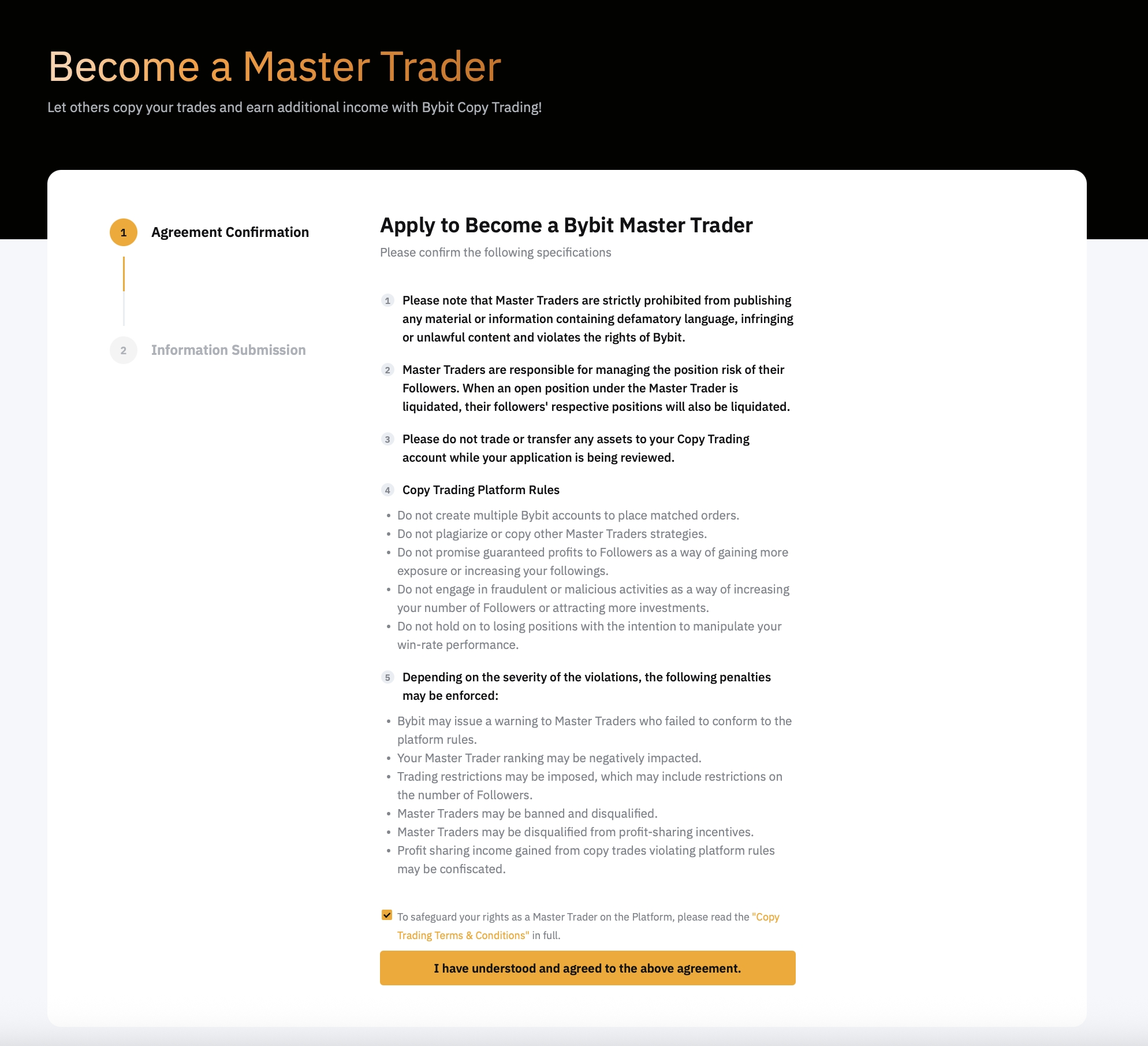 • 了解规则:阅读 Bybit 跟单交易交易达人协议