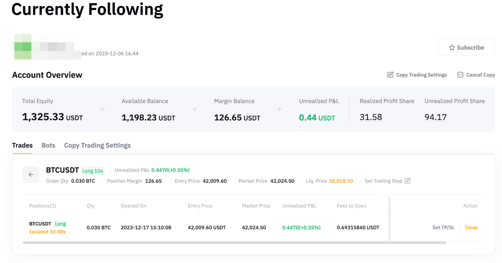 请注意,在您取消跟单交易达人后,您的机器人将被终止,所有未平仓位将被平仓,剩余的余额将退还至您的资金账户。