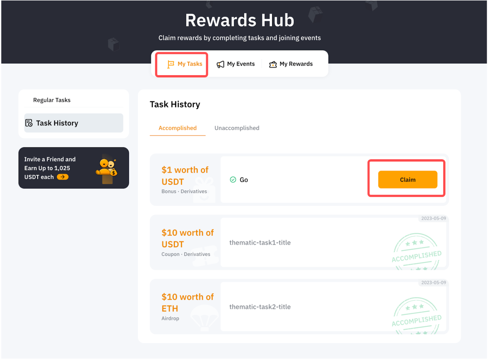 第 2 步:点击我的任务,然后选择任务记录,在已完成部分领取您的体验金。