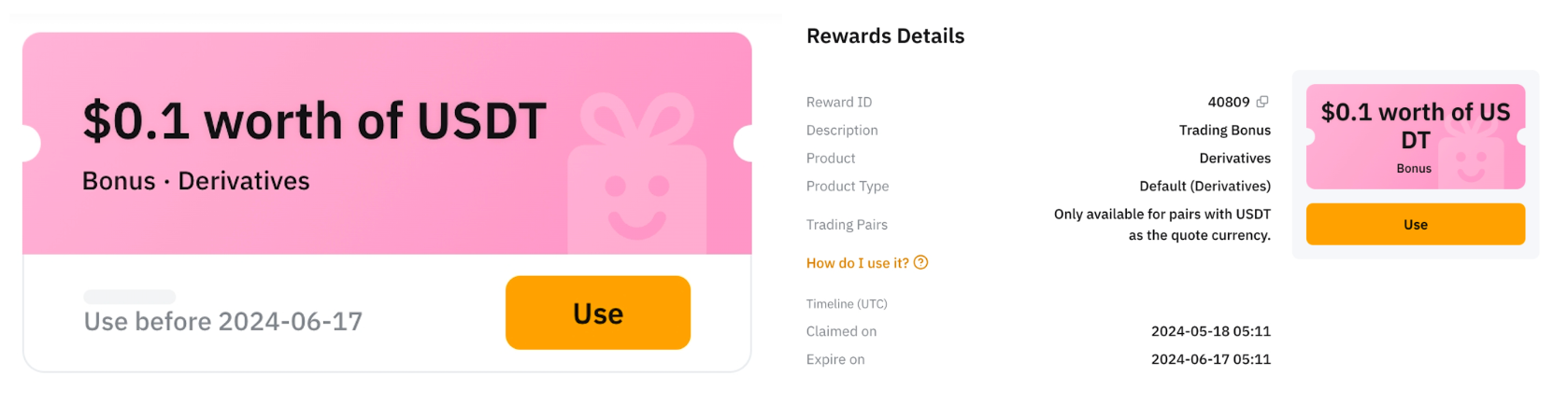 衍生品体验金可作为多种方式使用,例如仓位保证金、扣除手续费或资金费用,以及抵扣 Bybit 平台上的潜在交易损失。 领取体验金后,体验金将在可用余额前自动使用。使用这些体验金,您可以提高交易能力并减少潜在损失,从而实现更高的灵活性和风险管理能力。