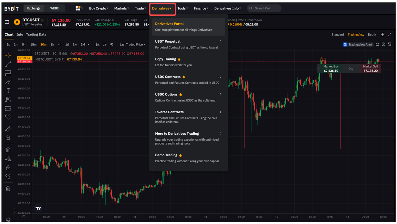 第 1步: 将光标悬停在衍生品标签页,然后点击所需合约类型,即可前往相应交易界面。