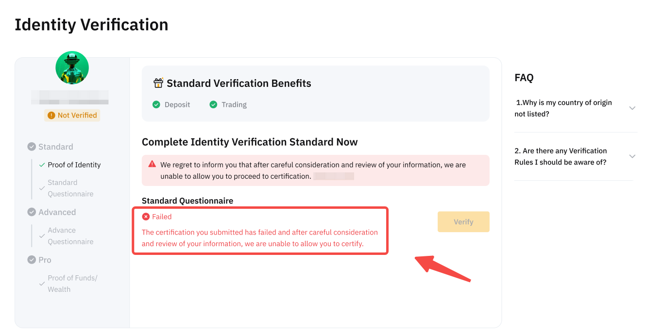 或者,您可以通過單擊 [?] 圖標從KYC身份認證頁面查看您的 KYC 認證結果。