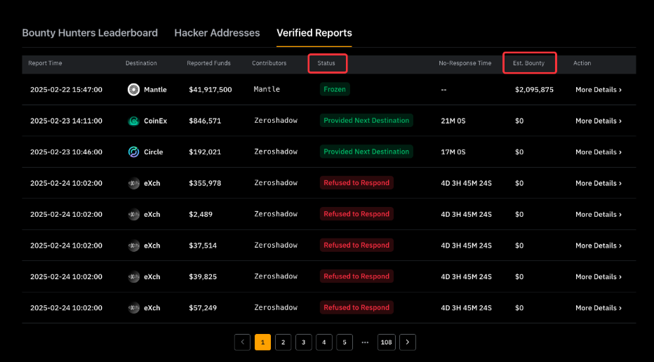只有當潛在交易者成功凍結資金時,才會獲得獎勵。您可以在「已認證報告」頁面查看報告狀態和預估賞金。