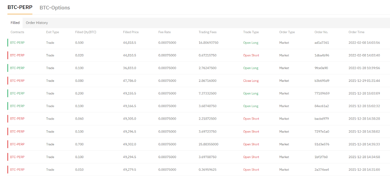另外,您可以在持倉區查看您的訂單詳情,其中包括您的倉位概覽,倉位,活動單,條件單,已成交訂單以及訂單歷史。
