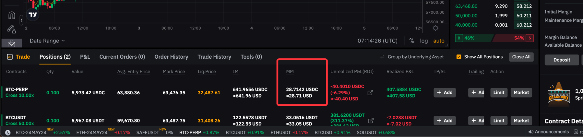 倉位所需的維持保證金 (MM) 可在倉位選項卡中找到。